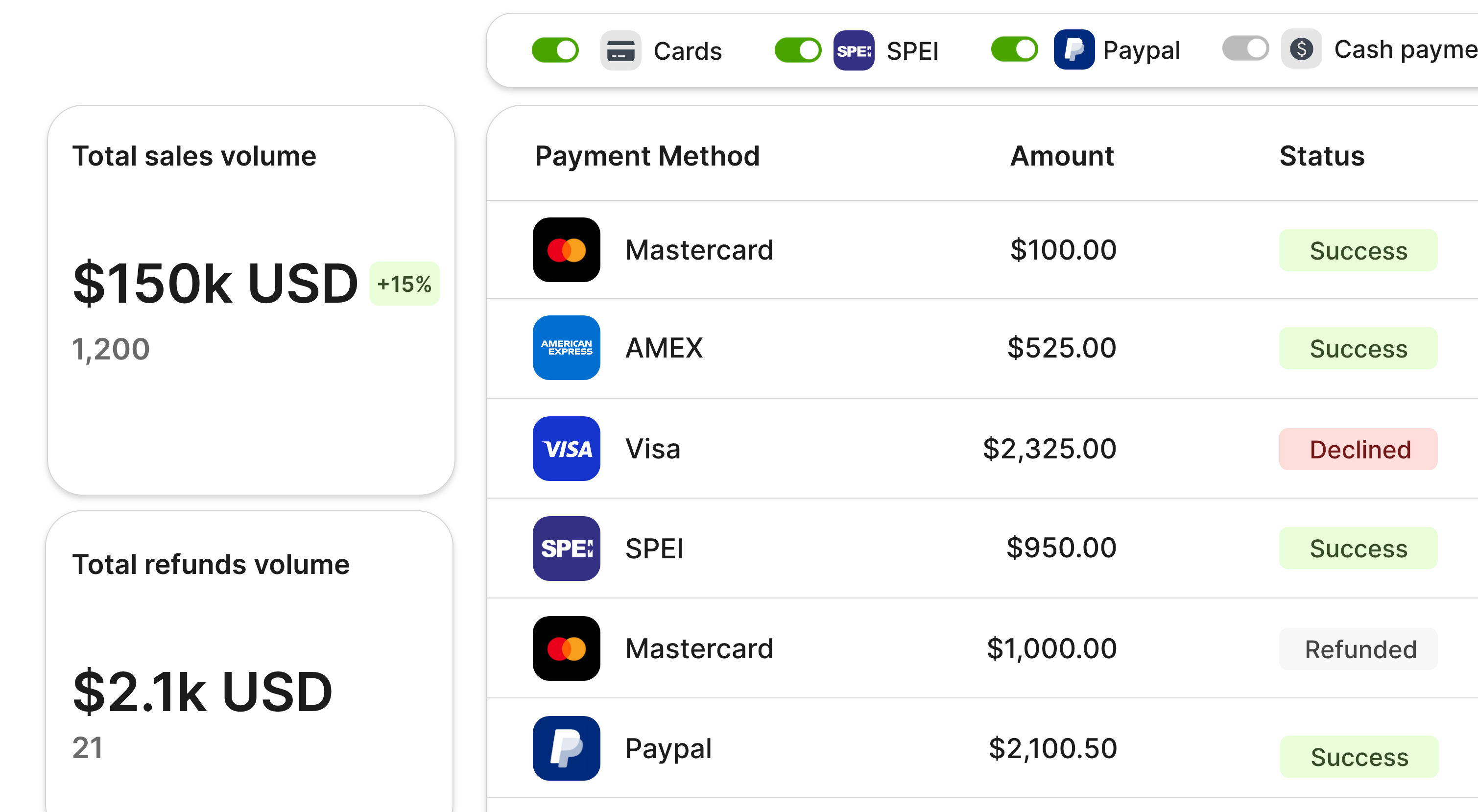 Offer businesses a comprehensive and easy-to-understand breakdown of their payment operations through visualized data and insights.
