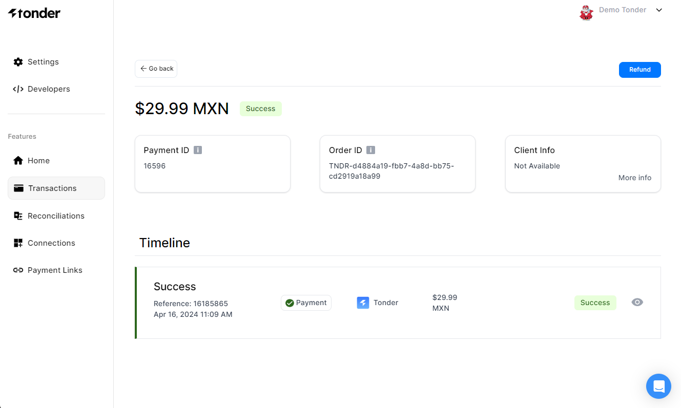 When you first access the Tonder dashboard, you already can simulate creating payments. Payment link is one of the options available. To create a payment link, follow the steps below: